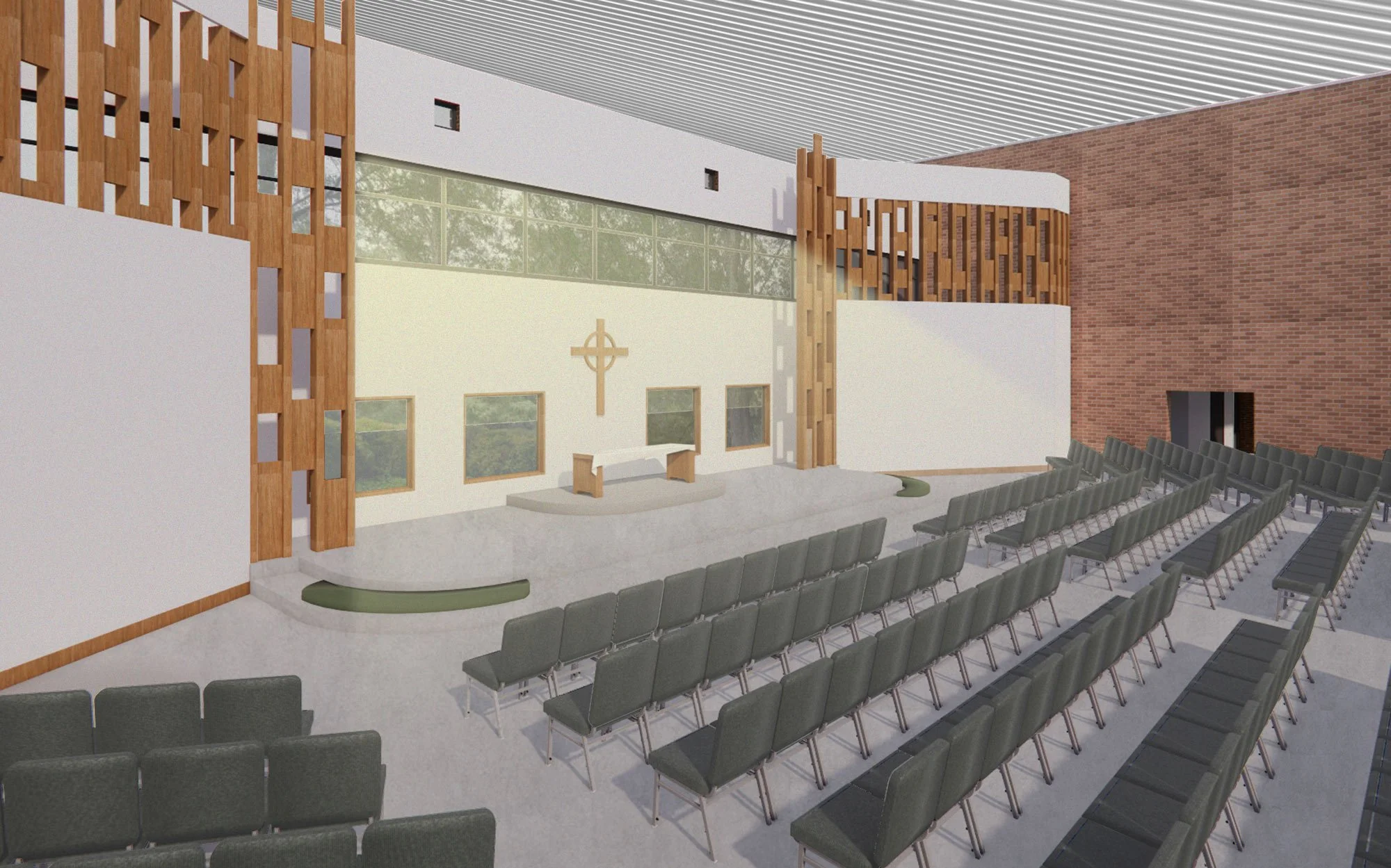 Throughout the building, elements like our belltower and archways, natural light, and green space will create a warm, inviting, and distinctly sacred feel. This work will require us to essentially gut the entire building floor to ceiling. We will need new lights, floors, chairs, walls and structures, along with critical systems such as HVAC, sprinkler, sound, and lighting.