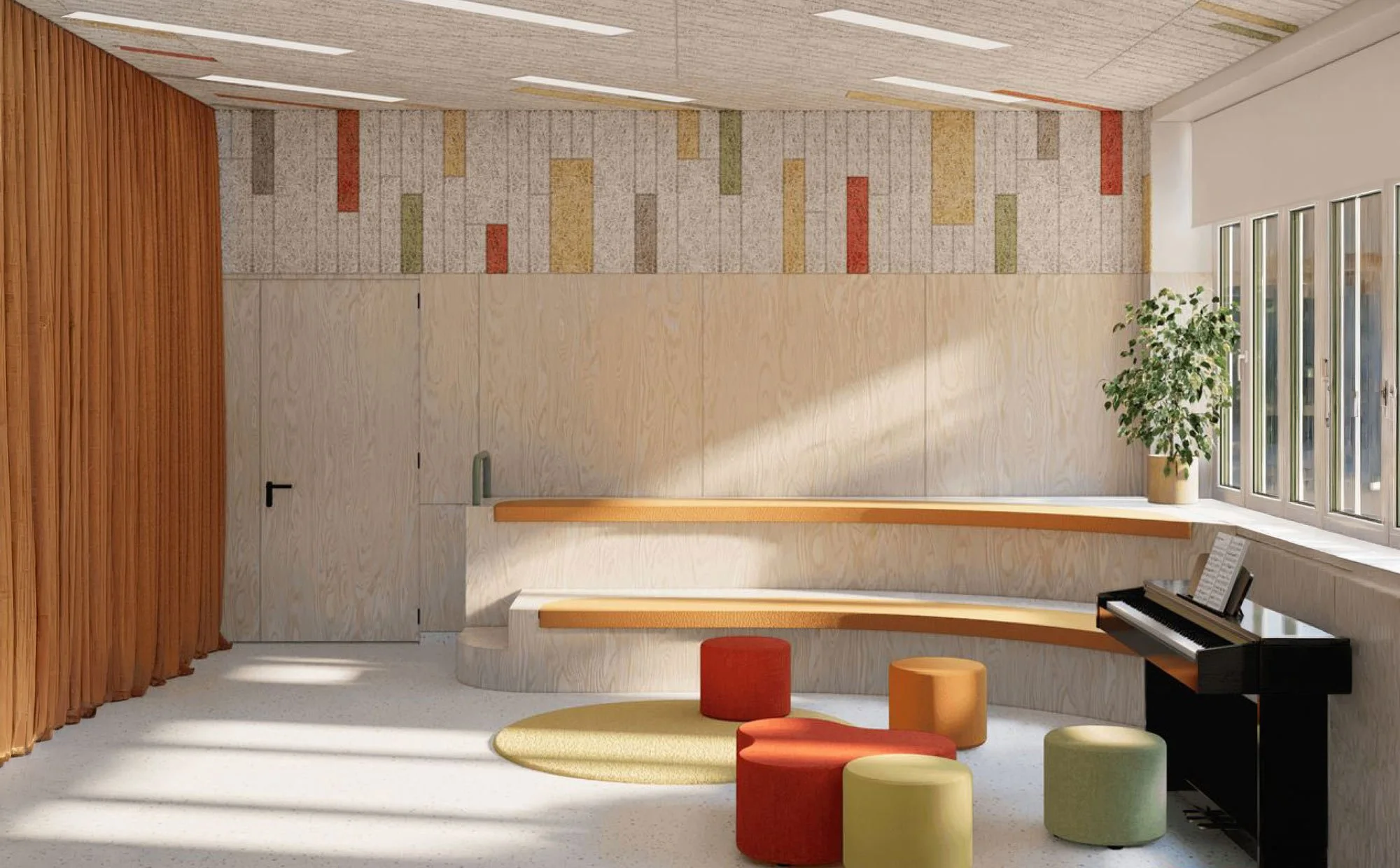 We will have the opportunity, for the first time, to create rooms designed specifically for kids and youth. This includes large gathering rooms, as well as smaller rooms for nursery and younger classes. We will have large indoor flex spaces for kids to play and to worship together as a group. We look forward to creating outdoor space for play as well, and for all of us to be together under the trees one day.